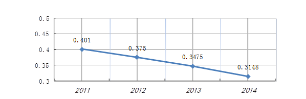 “十二五”铁路交通事故10亿吨公里死亡率变化趋势图