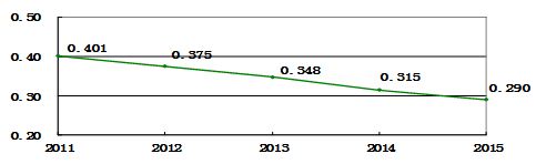 “十二五”铁路交通事故10亿吨公里死亡率变化趋势图