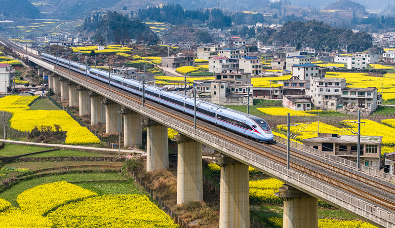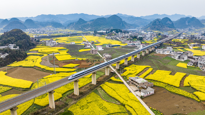 仲春时节,贵州省多地油菜花竞相绽放。一趟趟列车在油菜花海之中穿行,勾勒出黔贵大地朝气蓬勃的春日景象。