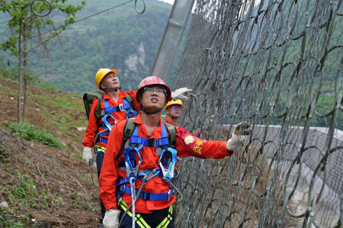 3个小时左右,该处山体排查处置完毕。这群“蜘蛛人”踩着主动网缓缓下山,顾不得休息,向着侯家坡隧道挺进。
