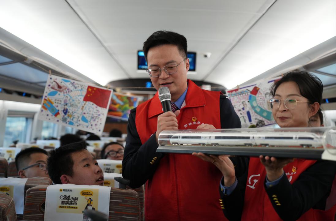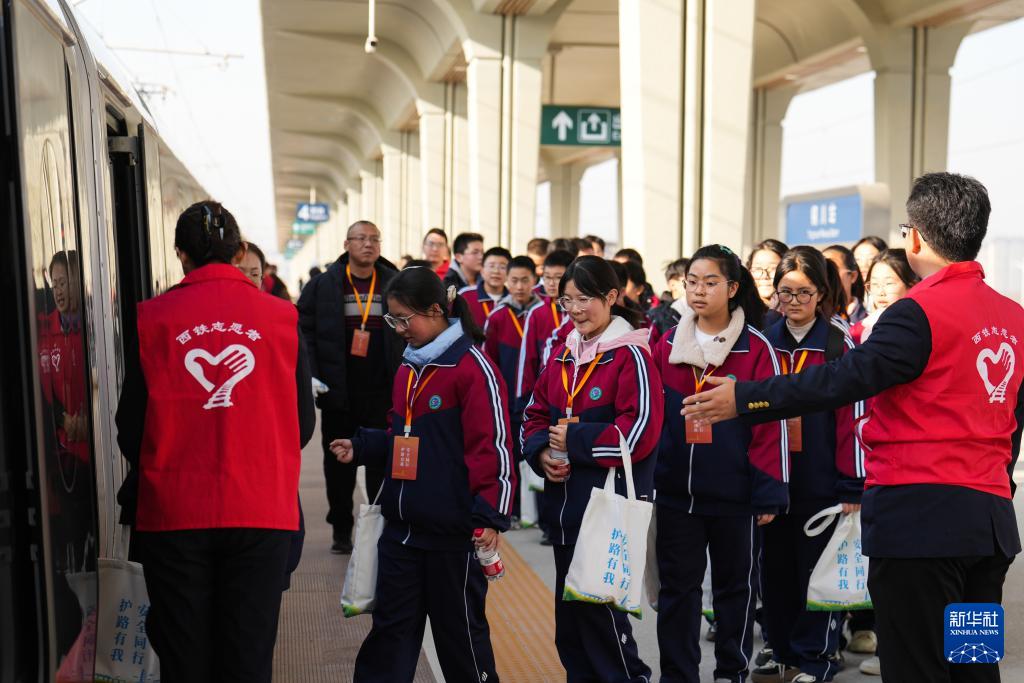 12月7日,来自西安、延安、铜川、渭南四市的西延高铁沿线居民及中小学师生代表参加西延高铁爱路护路主题宣传活动。沿线12所学校310名师生代表,通过乘车体验与车站观摩相结合的方式,沉浸式学习高铁安全知识。