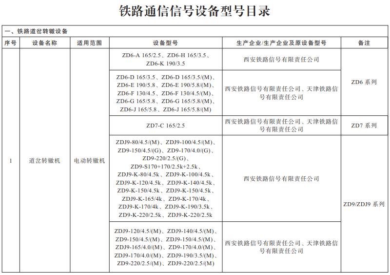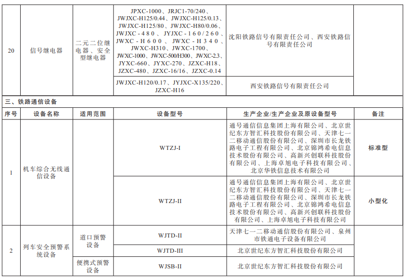 根据铁路运营安全和铁路行业发展需要,国家铁路局将适时对《铁路通信信号设备型号目录》进行调整、修订。
