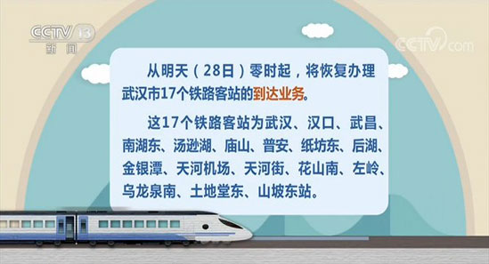 28日起恢复办理武汉17个铁路客站到达业务