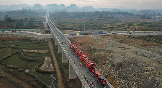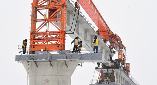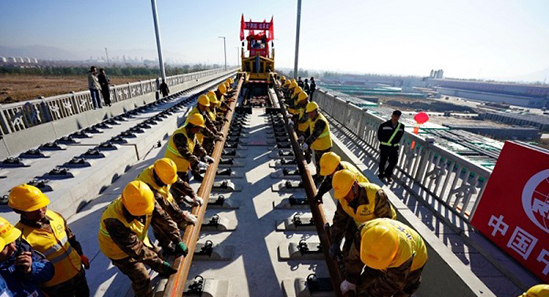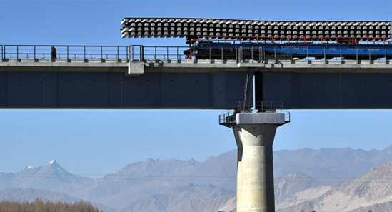 川藏铁路拉林段第一座跨雅鲁藏布江大桥铺轨