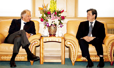2013年11月25日,国家铁路局局长陆东福在北京会见法国前总理...