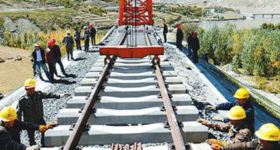 2013年9月24日,拉日铁路雅鲁藏布江一号特大桥铺轨,首次实现...