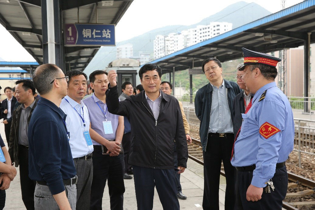渝怀铁路国家验收委员会主任、国家铁路局朱望瑜副局长(中)带队检查铜仁车站