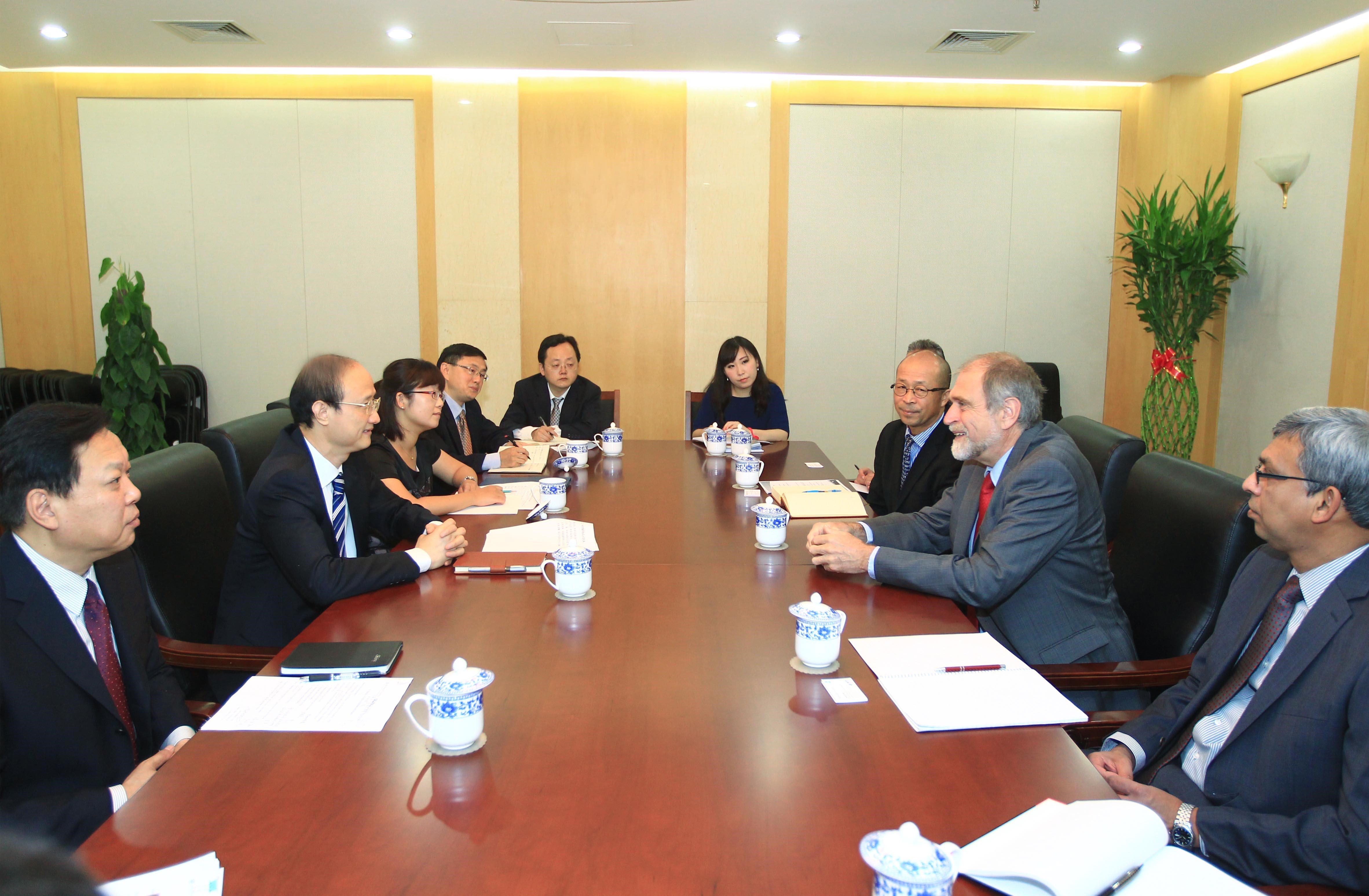 6月11日,国家铁路局党组成员郑健(左二)在北京会见中国工程院外籍院士、美国工程院院士、澳大利亚蒙纳士大学常务副校长塞泊(右二)一行,双方就铁路技术标准等问题进行了交流座谈。