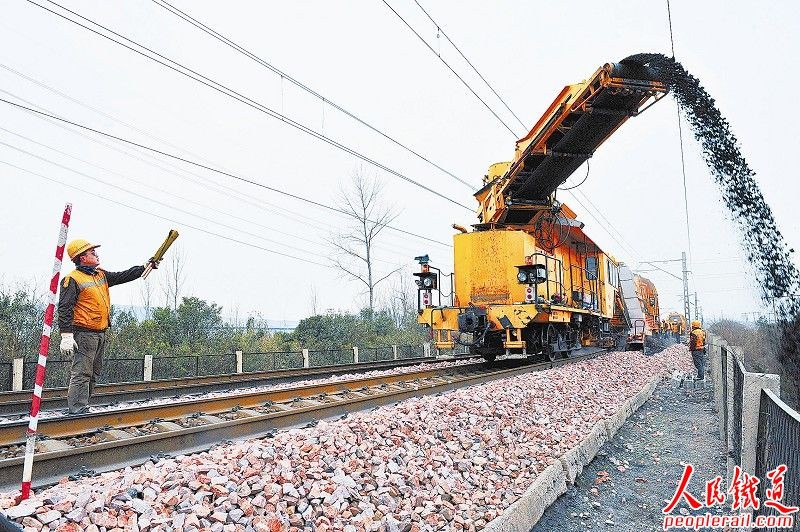在冬运、春运中,铁路客流始终保持高位运行,行车设备和客运服务设施在低温、雨雪、冰冻条件下经历较长时间高强度、超负荷的运用,致使部分设备处于 “亚健康”状态,甚至出现 “病痛”。针对这一情况,从3月份开始,铁路相关企业对行车设备和客运服务设施进行全面整修,及时消除安全隐患,进一步提升设备运用质量。图为昆明铁路局广通工电段职工在进行线路施工改造。侯小燕 摄