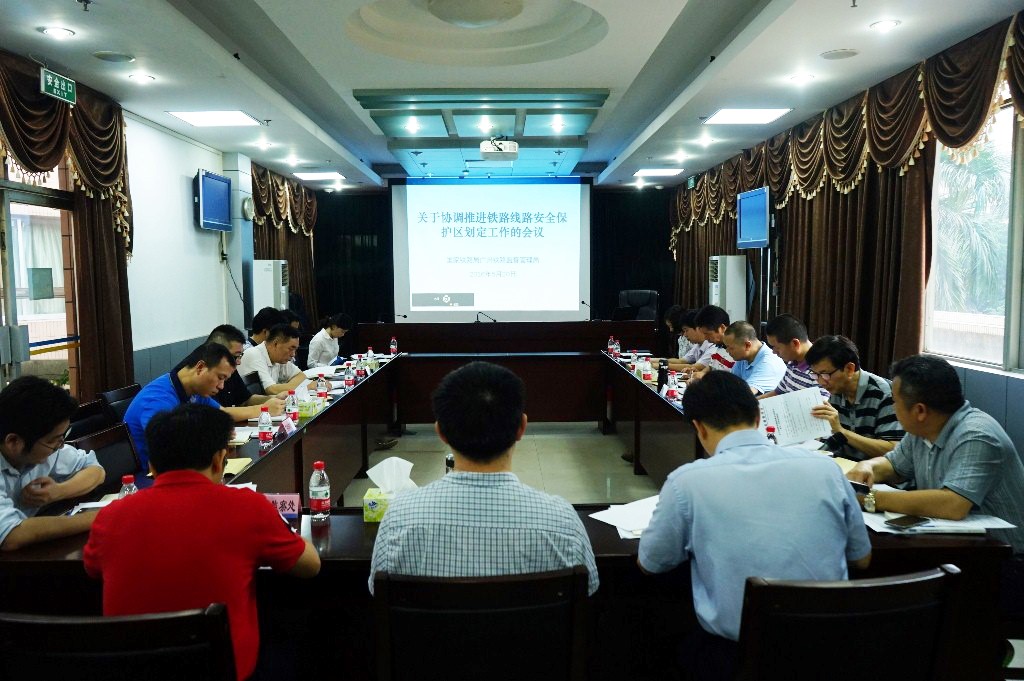 一是加强汛期高铁防洪安全检查。受超强厄尔尼诺影响,今年辖区内防洪形势十分严峻。广州铁路监管局把高铁防洪安全作为履职监管的重要任务,超前谋划部署,制定工作方案,深入一线开展监督检查。同时,督促指导辖区内运输企业和工程建设单位,强化隐患排查、行车组织、物资储备、应急管理,加大物防、技防、人防力度,确保了进入汛期后高铁运输安全和工程建设安全。二是开展高铁移动设备和固定设备调研检查。广州监管局成立了高铁行车设备质量安全调研检查组,深入广铁集团、南宁局机关,以及动车段(所)、高铁工务段等单位,围绕安全责任落实、规章制度、技术标准、检修规程、应急处置等方面,与企业人员共同研讨,分析问题,研究对策,提升高铁设备源头质量,提升检修能力,提升故障排查和处置水平。三是加大高铁路外安全环境整治力度。广州铁路监管局积极组织协调地方政府部门、铁路运输企业,多次召开专题会议,明晰各方职责分工,加大路外安全环境排查整治、“打非治违”专项行动和安保区划定工作力度。截至目前,在各级地方政府的大力支持下,会同铁路运输企业、建设单位完成辖区内高铁安保区划定3452公里,完成率81%,剩余464公里预计年底前全部完成。四是推进高铁安全防护工程建设。督促辖区运输企业加快建立“人防、物防、技防”相结合的高铁安全防护体系,实现高铁重点部位实时监控全天候、全覆盖。图为广州铁路监管局组织辖区地方政府有关部门和铁路运输企业召开高铁安全?;でㄍ平ぷ骰嵋?。