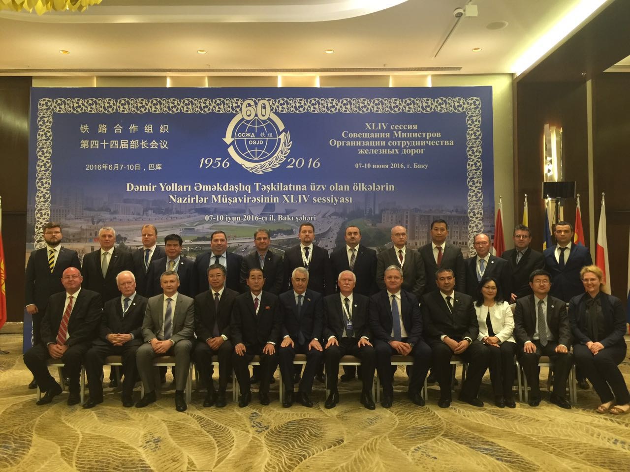 6月7日至9日,国家铁路局副局长于春孝率团参加在阿塞拜疆首都巴库举行的铁路合作组织第四十四届部长会议。本次会议共有23个铁组部长会议成员单位出席?;嵋樘×颂榧跋律韫ぷ骰?015年工作报告等有关情况,讨论了统一铁路法等后续工作安排,商定了有关通过国际铁路直通联运公约文本国际会议第一次会议的筹备工作。