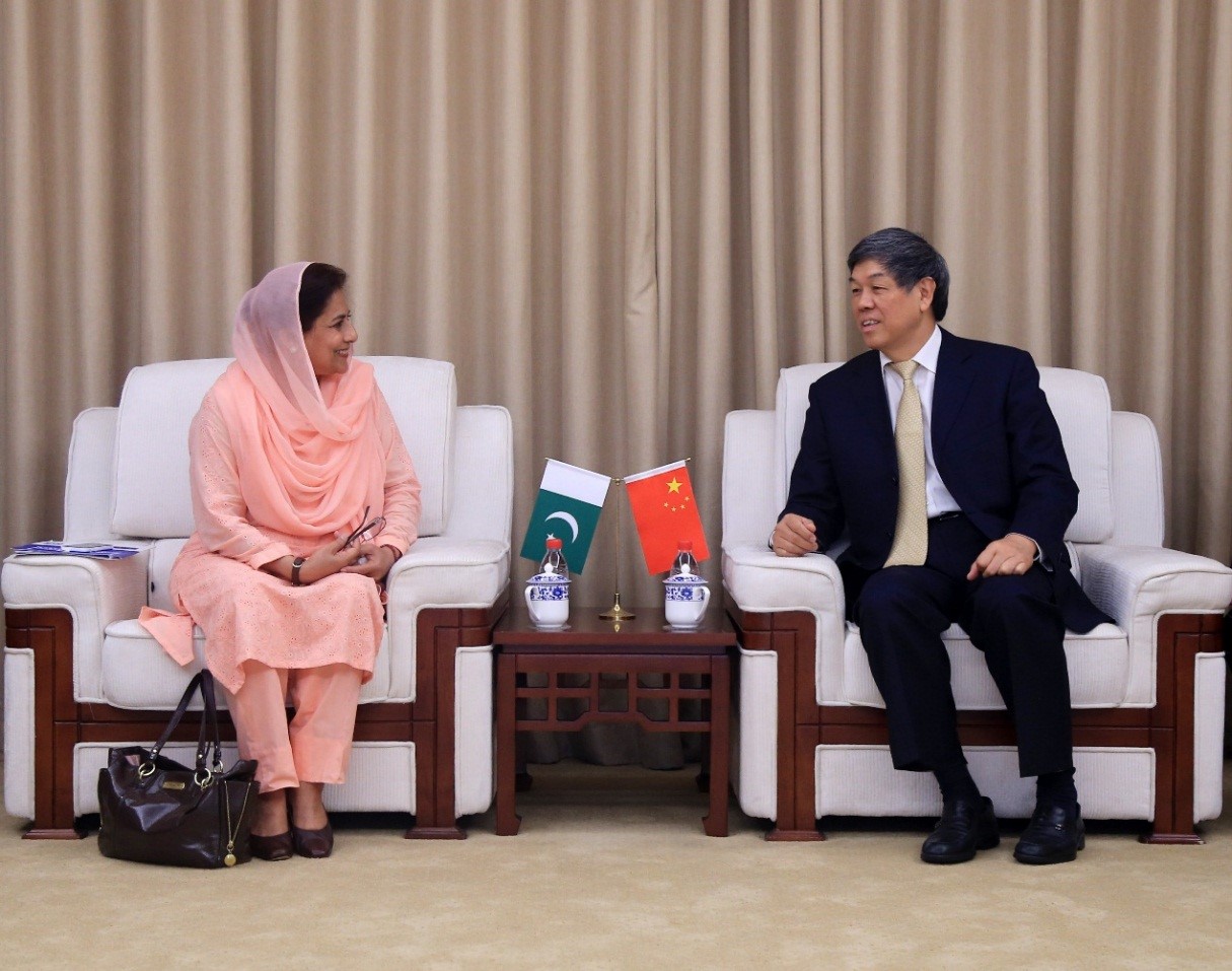 7月26日,国家铁路局局长陆东福会见了巴基斯坦铁道部国务秘书帕尔文﹒阿格哈,并与阿格哈共同主持召开中巴铁路合作会议,商谈中巴经济走廊框架下铁路合作项目实施问题。国家铁路局党组成员郑健及相关司局,国家发改委、国家开发银行、中国中铁股份有限公司、中国铁建股份有限公司、中国交通建设股份有限公司等有关部门和单位参加了会议。图为陆东?;峒突固固啦抗衩厥榕炼末q阿格哈。
