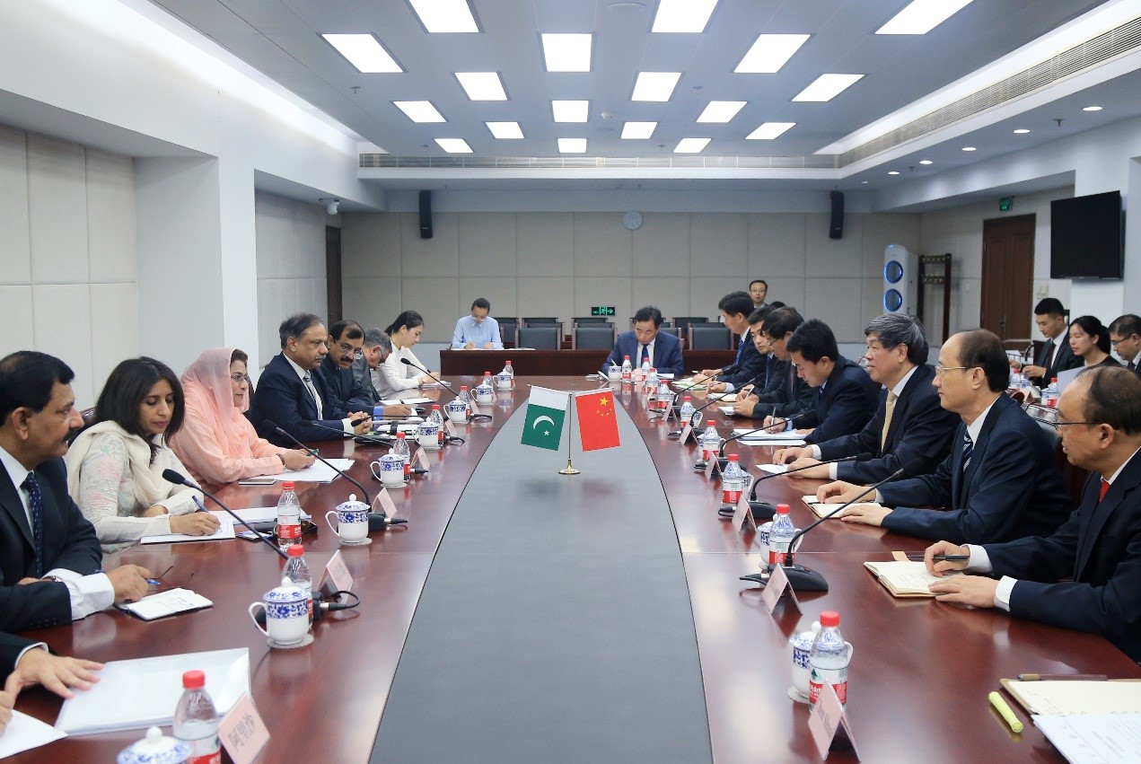 陆东福(右三)与巴基斯坦铁道部国务秘书帕尔文﹒阿格哈(左三)共同主持召开中巴铁路合作会议