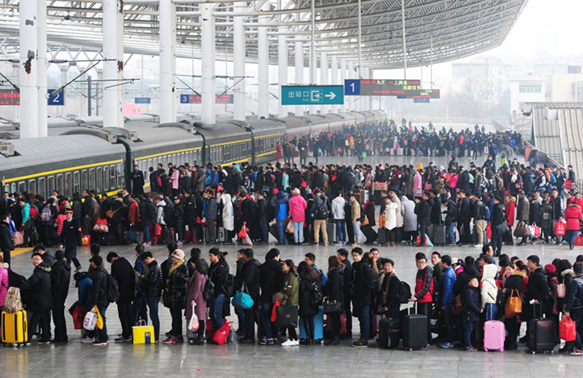 春节假期全国铁路运输秩序良好,安全平稳有序。1月27日至2月2日全路共发送旅客5199.3万人次。图为江西九江站组织返程旅客有序乘车。