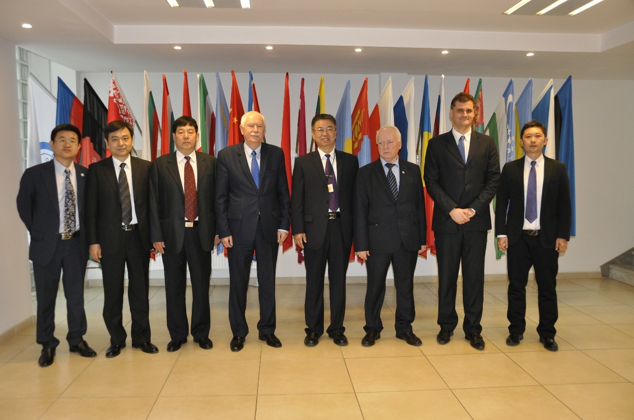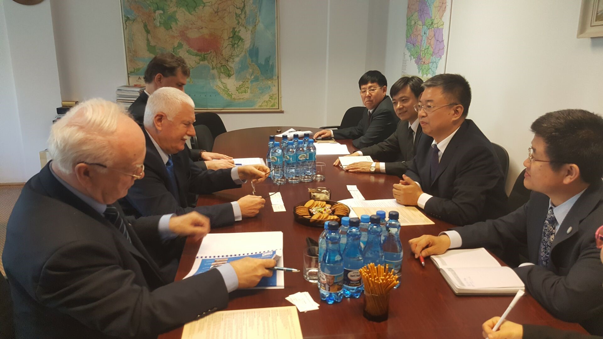 4月11日,国家铁路局副局长于春孝应邀率团出访铁路合作组织,与铁路合作组织主席绍兹达在铁组委员会(华沙)举行了会晤,双方就落实中欧班列运输、扩大统一运单使用范围等问题深入交换意见。图为于春孝副局长一行(右二)与铁路合作组织主席绍兹达等举行会晤。