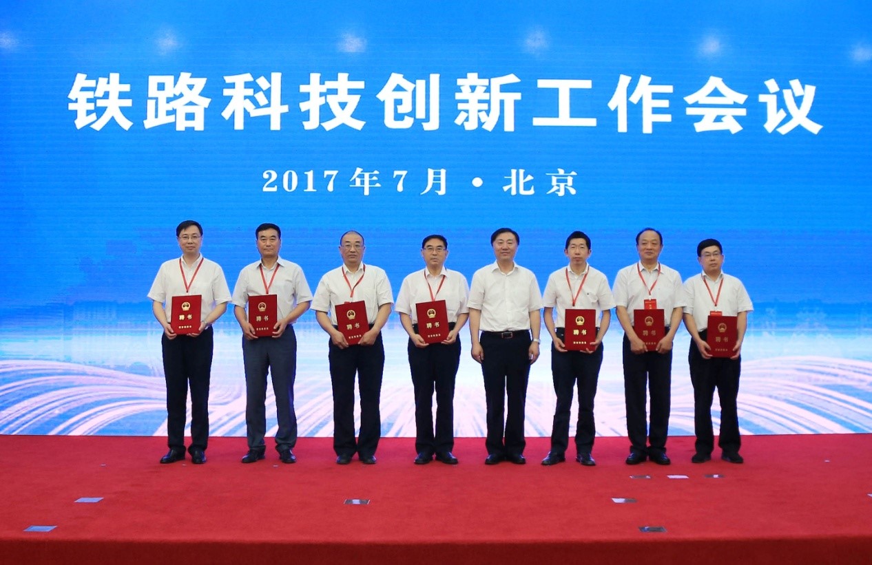 图为科技部党组书记王志刚同志,中国科协党组成员宋军同志为荣获2015—2016年度铁路优质工程奖单位颁奖。