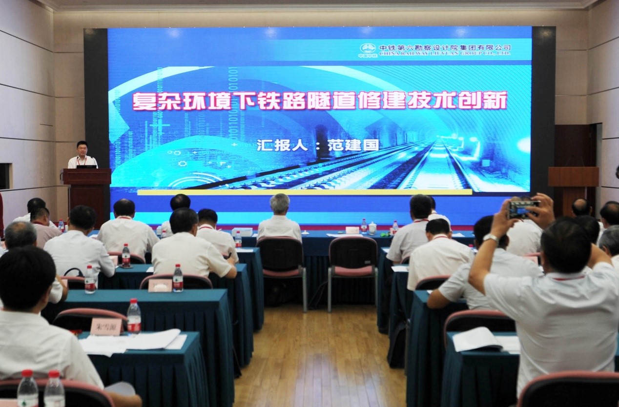 图为中铁第六勘察设计院集团有限公司作题为《复杂环境下铁路隧道修建技术创新》交流发言。