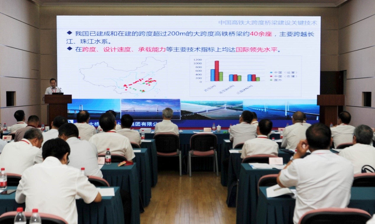 图为中铁大桥勘测设计院有限公司作题为《中国高铁大跨度桥梁建设关键技术》交流发言。