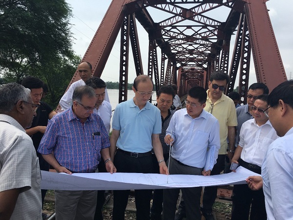 郑健(左三)踏勘杰勒姆河桥