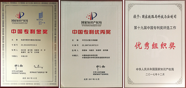 近日,国家知识产权局发布《国家知识产权局关于第十九届中国专利奖授奖的决定》(国知发管字〔2017〕77号),其中,国家铁路局组织推荐的“轨道车辆实车撞击试验系统(专利号:ZL201410195318.X)”荣获中国专利金奖,是国家铁路局成立以来首次,“不打孔式剪力传感器(专利号:ZL200710130722.9)”荣获中国专利优秀奖。