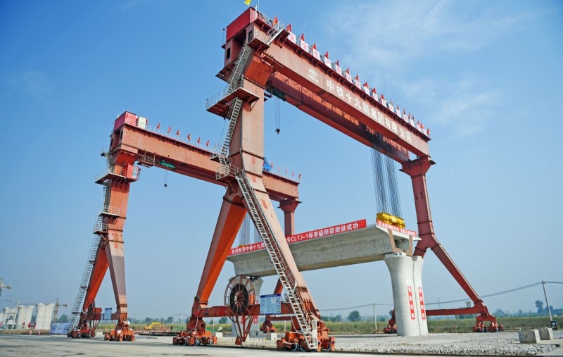 9月20日,在辽宁朝阳大凌河特大桥施工现场,一台近50米高的提梁机将一榀长32米、重达900吨的箱梁稳稳地安放在桥梁墩顶上,标志着朝凌客专施工进入架梁阶段。