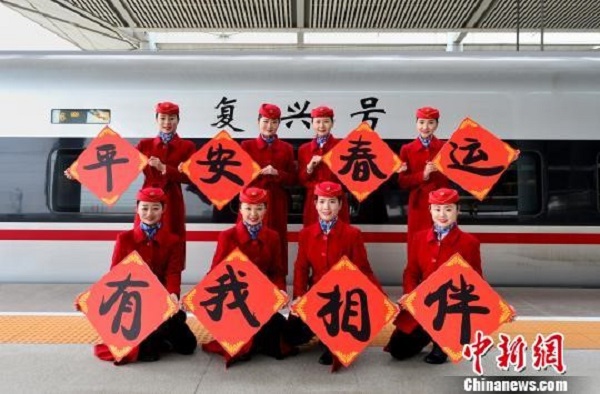 西安客运段动车队列车员在复兴号前合影。(来源:中新网)