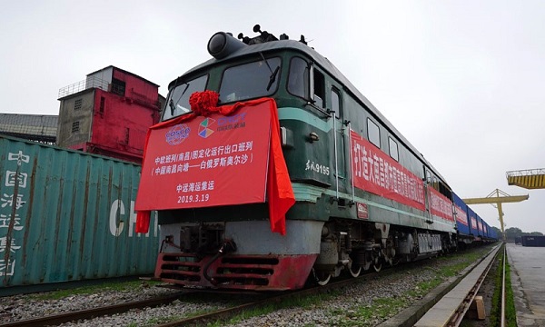 3月19日,中欧班列(南昌)图定化运行暨中国国际进口博览会“江西号”到发双向对开仪式在南昌(向塘)铁路口岸举行。满载着41车天然有机矿物培养原料和先进农用品的返程中欧班列(白俄罗斯至南昌),历经16天铁路运输,经由二连浩特入境抵达南昌(向塘)铁路口岸;同时,满载着46车服装、衣帽、电器等货物的南昌至白俄罗斯中欧班列将由二连浩特出境,行驶16天到达白俄罗斯明斯克站。两趟班列相继发出,标志着中欧班列(南昌-白俄罗斯)实现双向对发,这也是江西首条“点对点”中欧双向班列。
