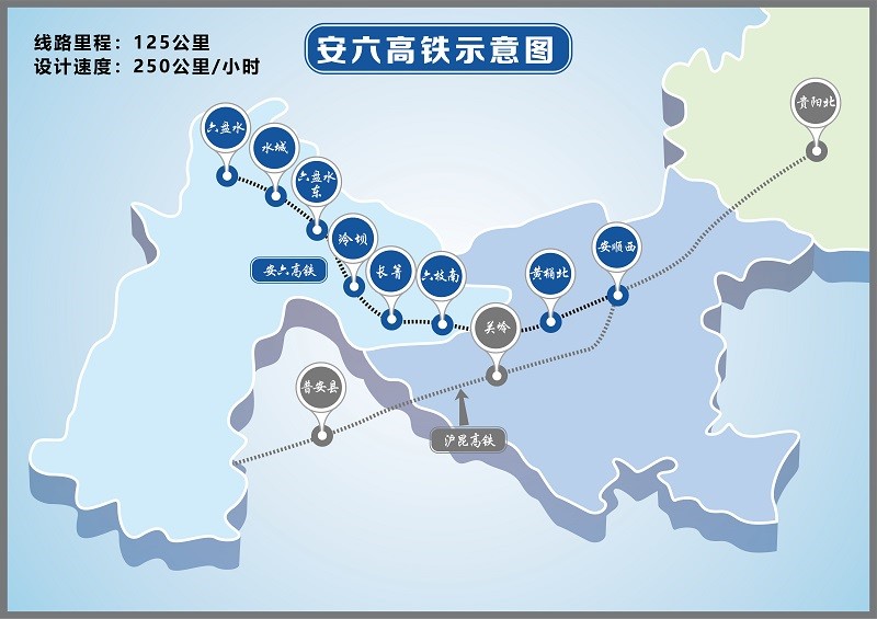 新建安顺至六盘水高速铁路(以下简称安六高铁)7月8日开通运营,贵阳至六盘水最快1小时09分可达。