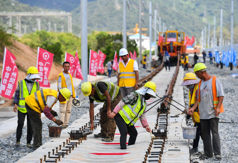 5月27日,随着中铁四局铺轨机组将一对长轨与深圳北站线路南段成功对接,赣深高铁广东段南端大里程方向正线铺轨全部完成。