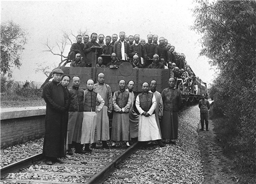 1909年10月2日,由中国人设计建造的第一条铁路——京张铁路通车典礼。