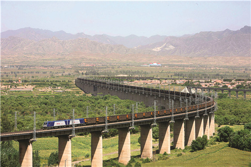 大秦铁路两万吨煤龙奔大海。