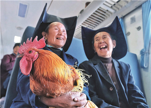 坐着"慢火车"赶集的彝族阿婆。