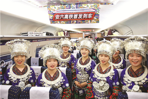 少数民族旅客载歌载舞庆祝高铁开通运营。