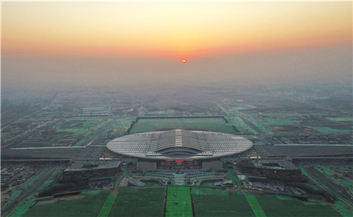 晨光下的京雄城际铁路雄安站。
