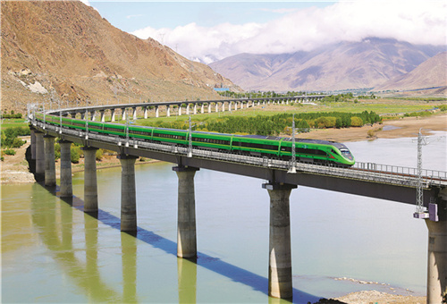 复兴号高原内电双源动车组驶出拉萨站,向林芝市进发。