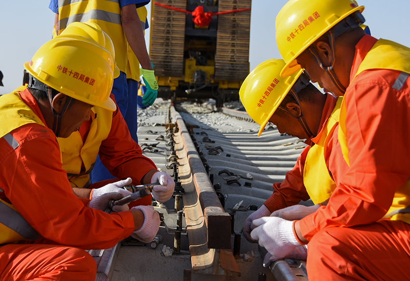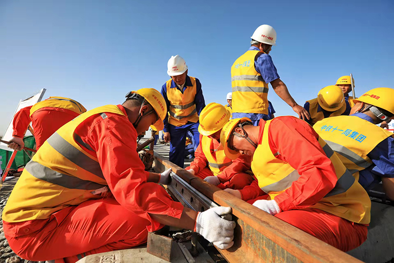 9月27日上午,随着最后两条钢轨在道床上铺设完成,作为环塔克拉玛干沙漠铁路“最后一公里”的和若铁路全线铺轨贯通,为2022年开通运营奠定坚实基础。和若铁路为国家重点铁路建设项目,线路全长825.476公里,2018年12月开工建设,连通南疆和田地区和田市与巴音郭楞蒙古自治州若羌县。