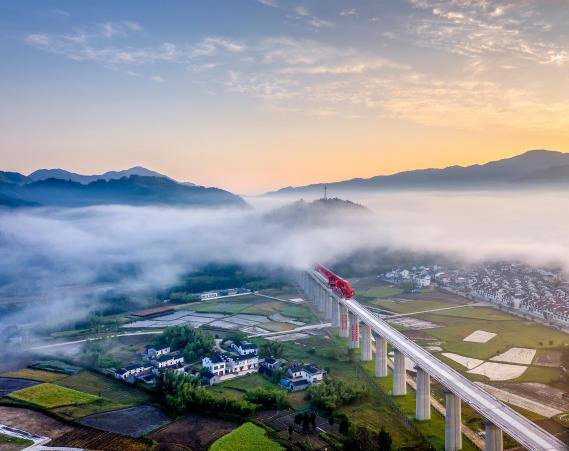 安徽高铁黄金旅游线路——池黄高铁建设现场。