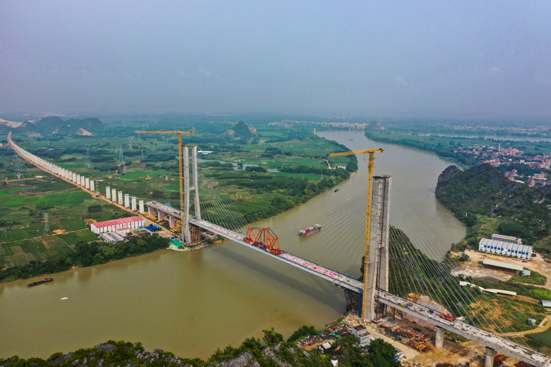 9月20日,由中铁广州工程局集团有限公司承建的南玉铁路百合郁江特大桥顺利合龙。百合郁江特大桥位于广西南宁横州市,是一座主桥长612米、主塔高146米、主跨330米的钢混混合梁斜拉桥。南玉铁路是南宁至深圳高铁的重要组成部分,设计时速350公里。