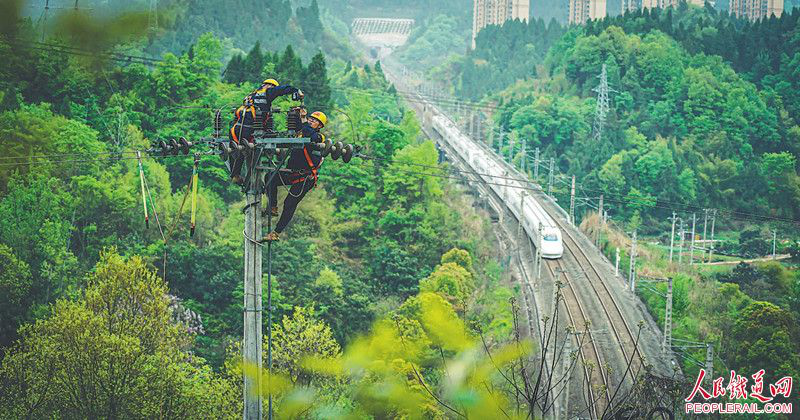 近日,宜昌综合维修段电力维修工区职工在宜万铁路宜昌东至宜昌南区间进行电力设备维修作业。闻子豪 摄