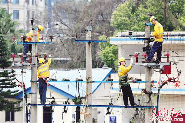近日,宜宾工电段电力车间职工对管内南岸坝站电力设备进行检修。胡志强 摄