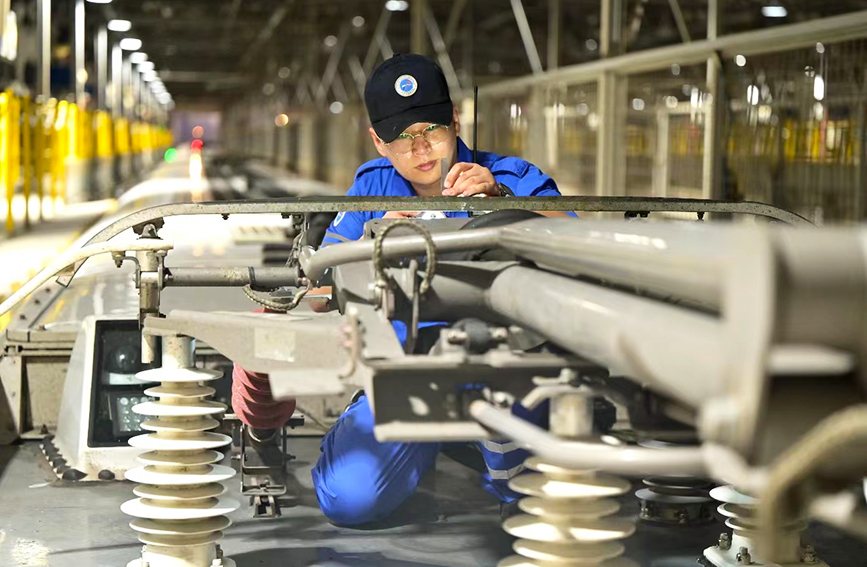 暑运期间,随着动车组上线率增加,动车组检修任务也变得繁重起来。天津动车客车段动车运用所检修库内,动车组机械师正在热火朝天地进行动车组检修作业。进入三伏天,夜晚的检修库更加闷热,动车组车顶温度最高达到45℃,动车组机械师们坚守在岗位上,高标准完成检修任务,保障暑运动车组安全平稳运行。