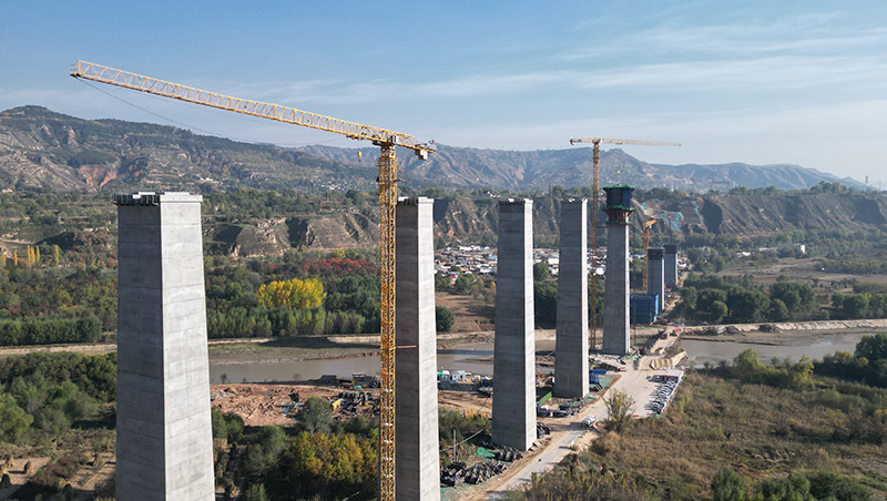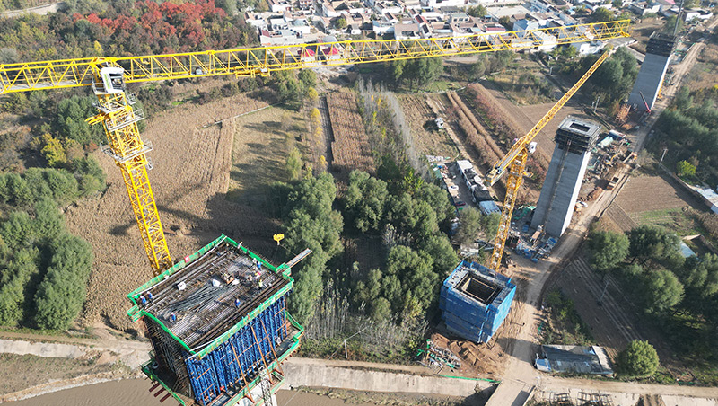 位于甘肃临夏境内的兰合铁路4标段北小塬大夏河特大桥墩身施工现场。