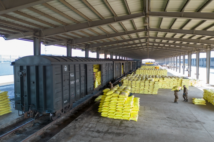 3月13日,在中国铁路哈尔滨局集团有限公司大庆车务段肇东站货场,工作人员在装卸化肥。