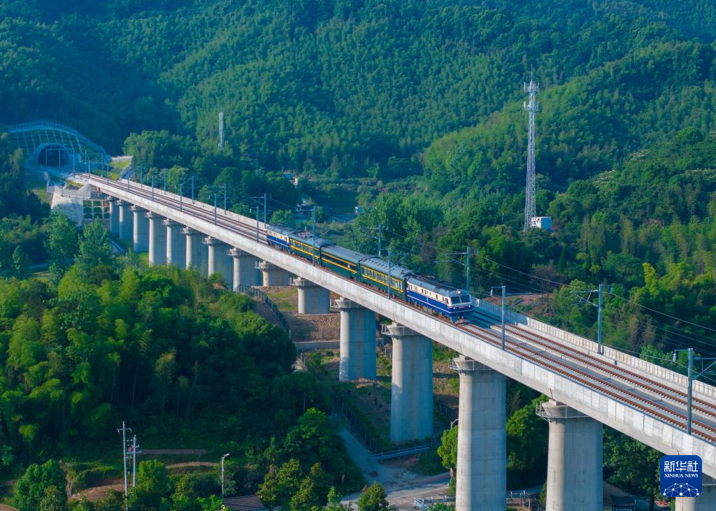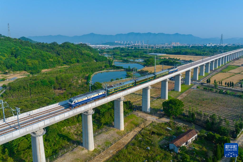 近日,杭州至温州高速铁路启动联调联试,进入工程验收关键阶段。杭温高铁北起杭州桐庐东站,途经金华市浦江县、义乌市、东阳市、磐安县,台州市仙居县,至温州市温州北站后,利用既有的杭深线延伸至温州南站,新建正线长度约260公里,设计时速350公里。全线设桐庐东、浦江、义乌、横店、磐安、仙居、楠溪江、温州北、温州南等9个车站,有隧道81座,特大、大中桥梁117座,桥隧比高达94.5%。
