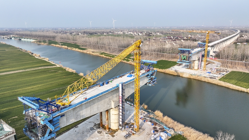 开春以来,位于安徽省亳州市的阜淮铁路建设现场一派繁忙景象,施工人员抢抓春季有利天气,加紧施工,确保重点工程建设进度。阜淮铁路位于安徽省北部,途经阜阳、亳州、宿州、淮北,正线全长约142.5公里,设计时速350公里。
