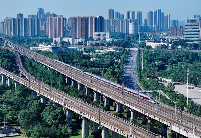 2025年6月27日,首发高铁班列驶过渝厦高铁武隆黄草乌江特大桥。当日,渝厦高铁重庆东至黔江段开通运营。