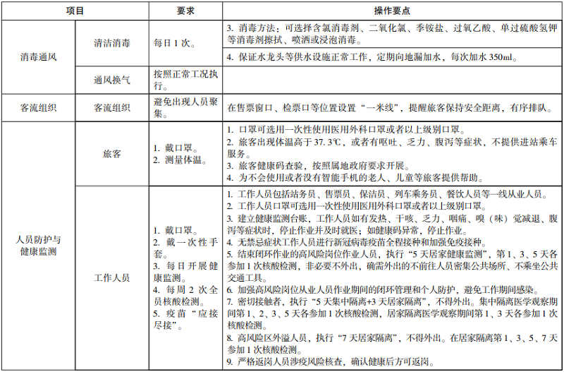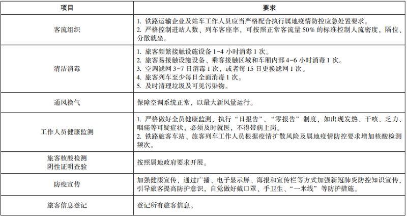 2.风险区内铁路旅客车站及旅客列车疫情防控要求