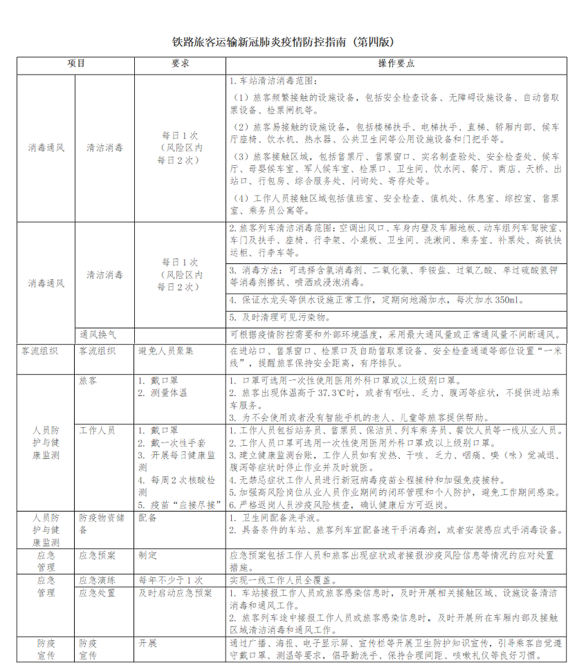 为深入贯彻落实党中央、国务院关于新冠肺炎疫情防控工作决策部署,坚持第九版防控方案,落实二十条优化措施,按照国务院联防联控机制综合组《关于进一步优化落实新冠肺炎疫情防控措施的通知》(联防联控机制综发〔2022〕113号)、交通运输部《客运场站和交通运输工具新冠肺炎疫情防控工作指南(第十版)》等要求,国家铁路局为更加科学精准防控,组织修订了《铁路旅客运输新冠肺炎疫情防控指南(第四版)》。现印发给你们,请认真组织实施。