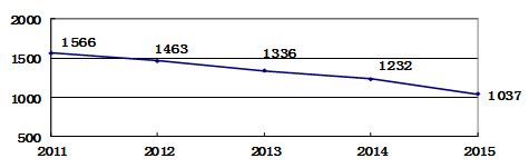 2015年全国铁路未发生铁路交通特别重大、重大事故;发生较大事故6件,同比持平。铁路交通事故死亡人数1037人,同比减少195人,下降15.8%;10亿吨公里死亡率[注释5]0.290,同比下降7.9%。