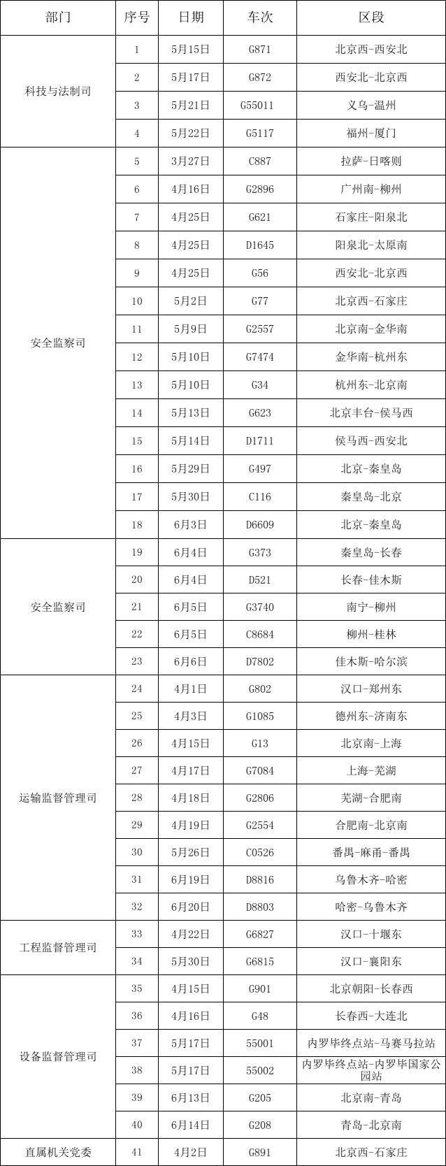 2024年二季度国家铁路局机关部门负责人添乘情况